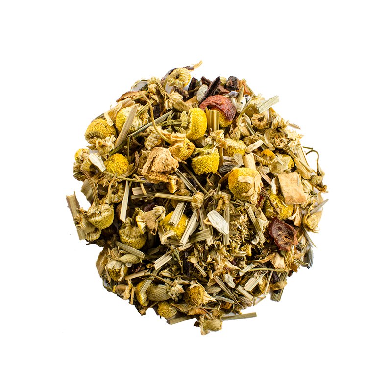 Our “sleepy time” tea, Serene blend, combines mint, chamomile, lemongrass, and lavender, perfect for promoting a good night’s sleep. Finish your day or evening meal with this tea to encourage relaxation and restfulness. Additionally, its delicate, floral, and slightly bitter notes make it an excellent infusion for enhancing cocktails.