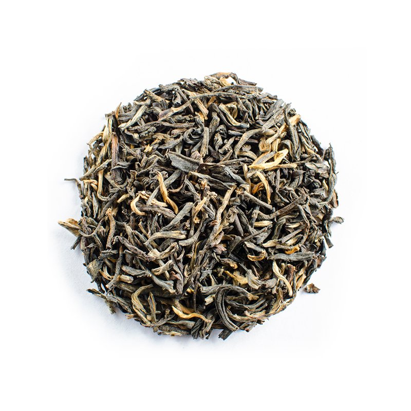 Golden Monkey tea or Jin Hou comes from the Fujian province of China. It grows in altitudes of 1200 meters and is hand picked in early spring. Only the top bud and first leaf are picked and hand crafted into the shape of a monkey’s paw.  It is one of the finest black teas with complex, non astringent flavors.  Excellent tea for enjoying multiple steeps.  If you want to dazzle or impress, serve it Gong Fu style.